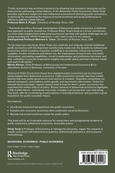 Behavioral Public Economics shows how standard public economics can be improved using insights from behavioral economics. This book calls for a rethinking of assumptions of individual behavior and provides a good foundation for public economic theory.