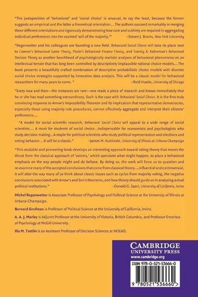 Behavioral Social Choice looks at the probabilistic foundations of collective decision-making rules. The authors challenge much of the existing theoretical wisdom about social choice processes, and seek to restore faith in the possibility of democratic decision-making. In particular, they argue that worries about the supposed prevalence of majority rule cycles that would preclude groups from reaching a final decision about what alternative they prefer have been greatly overstated. They provide new insights into how alternative model specifications can change our estimates of social orderings.