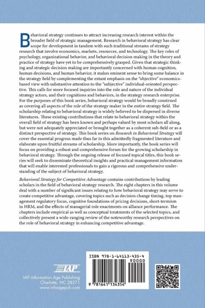 Contains contributions by scholars in the field of behavioural strategy research. Chapters deal with a number of significant issues relating to how behavioural strategy may serve to create competitive advantage, covering topics such as decision change timing, top management regulatory focus, and cognitive foundations of pricing decisions.