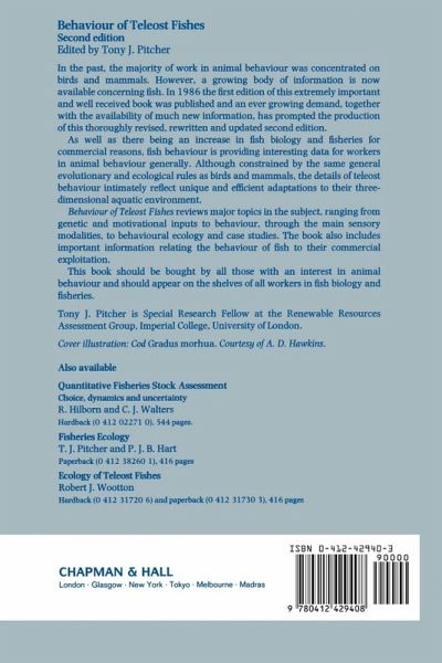 This book is about the behaviour of teleosts, a well-defined, highly successful taxonomic group of vertebrate animals sharing a common body plan and forming the vast majority of living bony fishes. There are over 22000 living species of teleosts, including nearly all the fish of importance in commercial fisheries and aquaculture. Teleosts are represented in just about every conceivable aquatic environment from temporary desert pools to the deep ocean, from soda lakes to sub-zero Antarctic waters. Behaviour forms the primary interface between these effective survival machines and their environ ment; behavioural plasticity is the key to the success of the teleost fishes. In the decade before the publication of the first edition of this book (1986) the study of animal behaviour underwent revolutionary changes under the dual impact of the new fields of behavioural ecology and sociobiology. Quantitative, experimentally-verifiable hypotheses about why individual animals behave were formulated for the first time and met with considerable success. Much of the early work in these new fields concentrated on birds and mammals, but material presented in the first edition of this book helped to demonstrate that fish behaviour is not just a simplified version of that seen in birds and mammals. but obeys the same ecological and evolutionary rules. In the five years since the first edition. much of the early theory has matured: optimal solutions to the problems of feeding and mating require subtle trade-offs of energy balance.