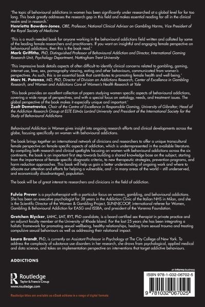 'The topic of behavioural addictions in women has been significantly under researched at a global level for far too long. This book greatly addresses the research gap in this field and makes essential reading for all in the clinical realm and in research.'