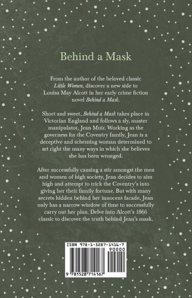From the prolific author of Little Women, this crime fiction novella highlights the breadth of Louisa May Alcott's talent. First published in 1866, Behind a Mask takes place in Victorian England and follows a sly, master manipulator, Jean Muir. Working as the governess for the Coventry family, Jean is a deceptive and scheming woman determined to set right the many ways in which she believes she has been wronged. After successfully causing a stir amongst the men and women of high society, Jean decides to aim high and attempt to trick the Coventries into giving her their family fortune. But with many secrets hidden behind her innocent facade, Jean only has a narrow window of time to successfully carry out her plan. Delve into Alcott's early classic to discover the truth behind Jean's mask.