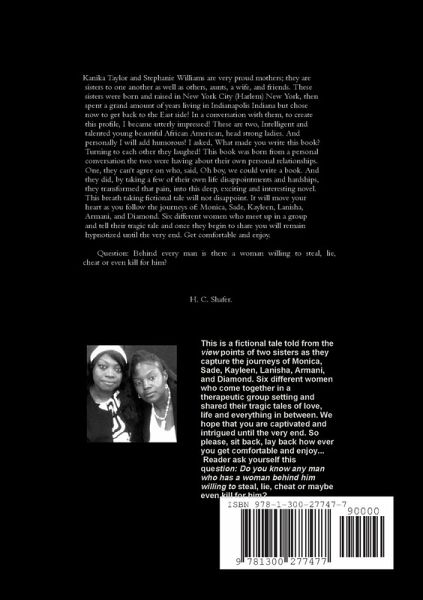This is a fictional tale told from the view points of two sisters as they capture the journeys of Monica, Sade, Kayleen, Lanisha, Armani, and Diamond. Six different women who come together in a therapeutic group setting and shared their tragic tales of love, life and everything in between. We hope that you are captivated and intrigued until the very end. So please, sit back, lay back how ever you get comfortable and enjoy...