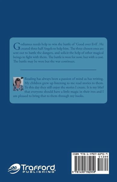 Godiamus needs help to win the battle of ‘Good over Evil’. He created three half Angels to help him. The three chosen ones are sent out to battle the dangers, and solicit the help of other magical beings to fight with them. The battle is won for now, but with a cost. The battle may be won but the war continues.