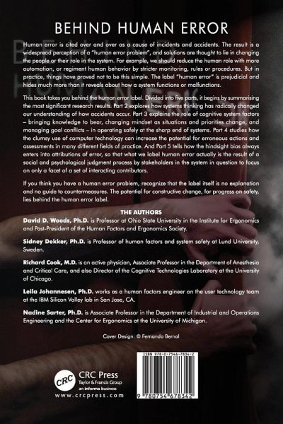 Human error is cited over and over as a cause of incidents and accidents. The result is a widespread perception of a 'human error problem', and solutions are thought to lie in changing the people or their role in the system. For example, we should reduce the human role with more automation, or regiment human behavior by stricter monitoring, rules or procedures. But in practice, things have proved not to be this simple. The label 'human error' is prejudicial and hides much more than it reveals about how a system functions or malfunctions. This book takes you behind the human error label. Divided into five parts, it begins by summarising the most significant research results. Part 2 explores how systems thinking has radically changed our understanding of how accidents occur. Part 3 explains the role of cognitive system factors - bringing knowledge to bear, changing mindset as situations and priorities change, and managing goal conflicts - in operating safely at the sharp end ofsystems. Part 4 studies how the clumsy use of computer technology can increase the potential for erroneous actions and assessments in many different fields of practice. And Part 5 tells how the hindsight bias always enters into attributions of error, so that what we label human error actually is the result of a social and psychological judgment process by stakeholders in the system in question to focus on only a facet of a set of interacting contributors. If you think you have a human error problem, recognize that the label itself is no explanation and no guide to countermeasures. The potential for constructive change, for progress on safety, lies behind the human error label.