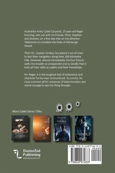 Australian Army Cadet Corporal, 15-year-old Roger Dunning, sets out with his friends, Peter, Stephen and Graham, on a five-day hike on the Atherton Tablelands to complete the Duke of Edinburgh Award. Their OC, Captain Conkey, has placed a set of clues to test their navigation along their 100-kilometre hike. However, almost immediately the four friends walk into trouble so unexpected and so deadly that it tests all their skills as cadets and their friendships. For Roger, it is the toughest test of endurance and character he has ever encountered. To survive, he must summon all his resources of determination and moral courage to see the thing through. About the Author: Christopher Cummings is a Vietnam veteran, teacher, parent, traveller, Officer of Cadets, and author of 35 books. Bushwalking, history and travel have added depth to his experiences. He grew up in Cairns and Cape York Peninsula, experiencing many adventures in the North Queensland bush and at sea in his father's ships, adventures he has woven into his books.