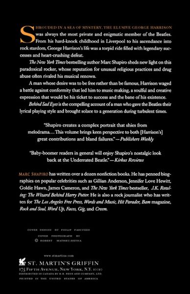 Shrouded in a sea of mystery, the elusive George Harrison has long been the most private and enigmatic member of the Beatles. From his hard knock childhood in Liverpool to his ascendance into rock infamy, George Harrison's life has been a torpid ride filled with legendary success and heart crushing defeat. New York Times bestselling author Marc Shapiro sheds new light on this paradoxical rocker, whose reputation for unusual religious practices and drug abuse often rivaled his musical notoriety. A man whose desire was to be free rather than be famous, Harrison's battle against conformity lead him to music making, a soulful and creative expression that would be his ticket to success and the bane of his existence. Behind Sad Eyes is the compelling account of a man who gave the Beatles their lyrical playing style and brought solace to a generation during turbulent times.