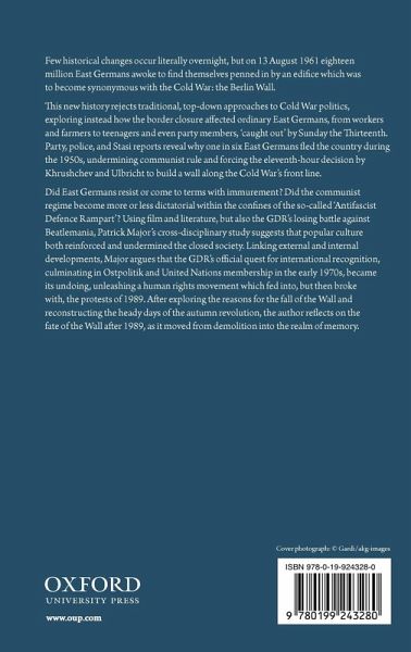 Few historical changes occur literally overnight, but on 13 August 1961 eighteen million East Germans awoke to find themselves walled in by an edifice which was to become synonymous with the Cold War: the Berlin Wall. This new history rejects traditional, top-down approaches to Cold War politics, exploring instead how the border closure affected ordinary East Germans, from workers and farmers to teenagers and even party members, 'caught out' by Sunday the Thirteenth. Party, police and Stasi reports reveal why one in six East Germans fled the country during the 1950s, undermining communist rule and forcing the eleventh-hour decision by Khrushchev and Ulbricht to build a wall along the Cold War's frontline. Did East Germans resist or come to terms with immurement? Did the communist regime become more or less dictatorial within the confines of the so-called 'Antifascist Defence Rampart'? Using film and literature, but also the GDR's losing battle against Beatlemania, Patrick Major's cross-disciplinary study suggests that popular culture both reinforced and undermined the closed society. Linking external and internal developments, Major argues that the GDR's official quest for international recognition, culminating in Ostpolitik and United Nations membership in the early 1970s, became its undoing, unleashing a human rights movement which fed into, but then broke with, the protests of 1989. After exploring the reasons for the fall of the Wall and reconstructing the heady days of the autumn revolution, the author reflects on the fate of the Wall after 1989, as it moved from demolition into the realm of memory.
