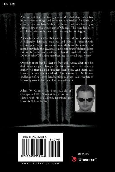 A century of lies have brought upon this dark day, only a few knew it was coming, and those few are marked for death. A century old conspiracy is about to be unveiled on a hot august summer day, in the windy city of Chicago. The stage has been set, all the evidence is there, but time may be running out. A dark horde of men in black trench coats lurk in the shadows. A hideously deformed man has evil plans, a schizophrenic security guard with constant visions of the horror he witnessed as a child may hold the key, and a tragic bombing of thousands has thrown the nation into a tail spin. Have the myths all been true? Do they exist? Why have they been kept secret all these years? One man must face his deepest fears and journey deep into his dark forgotten past. Betrayal and deceit surround him at every corner. All that he held true has been a lie. And death will become his only welcome friend. Now he must face his ultimate challenge before it is to late, but first he must realize the fate of humanity rests in his own blood soaked hands.