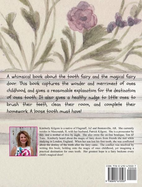 "Behind the Fairy Door" is a whimsical story full of rhyme that tells the tradition of the fairy door and the tooth fairy's visit. This book captures the magic and memories of ones childhood: jumping on the bed, ninja and pirates, hide and seek, tea parties, etc., and gives a reasonable explanation of the destination of ones tooth. Mothers will love reading this book! It is a tribute to all the little things they witness that mean the most. A little walk down memory lane! The book has 18 vibrant and magical illustrated spreads that appeal to both girls and boys alike. This book would be perfectly matched with a fairy door, a tooth fairy pillow, tooth brush, and other tooth fairy novelties.