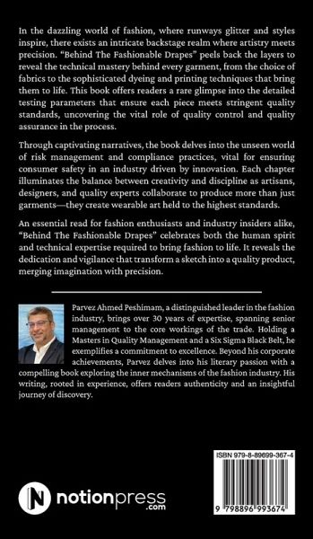 In the dazzling world of fashion, where runways glitter and styles inspire, there exists an intricate backstage realm where artistry meets precision. "Behind The Fashionable Drapes" peels back the layers to reveal the technical mastery behind every garment, from the choice of fabrics to the sophisticated dyeing and printing techniques that bring them to life. This book offers readers a rare glimpse into the detailed testing parameters that ensure each piece meets stringent quality standards, uncovering the vital role of quality control and quality assurance in the process. Through captivating narratives, the book delves into the unseen world of risk management and compliance practices, vital for ensuring consumer safety in an industry driven by innovation. Each chapter illuminates the balance between creativity and discipline as artisans, designers, and quality experts collaborate to produce more than just garments-they create wearable art held to the highest standards. An essential read for fashion enthusiasts and industry insiders alike, "Behind The Fashionable Drapes" celebrates both the human spirit and technical expertise required to bring fashion to life. It reveals the dedication and vigilance that transform a sketch into a quality product, merging imagination with precision.
