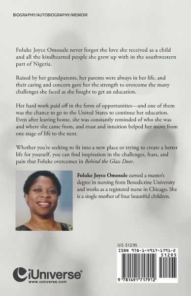 Foluke Joyce Omosule never forgot the love she received as a child and all the kindhearted people she grew up with in the southwestern part of Nigeria. Raised by her grandparents, her parents were always in her life, and their caring and concern gave her the strength to overcome the many challenges she faced as she fought to get an education. Her hard work paid off in the form of opportunities—and one of them was the chance to go to the United States to continue her education. Even after leaving home, she was constantly reminded of who she was and where she came from, and trust and intuition helped her move from one stage of life to the next. Whether you’re seeking to fit into a new place or trying to create a better life for yourself, you can find inspiration in the challenges, fears, and pain that Foluke overcomes in Behind the Glass Door.