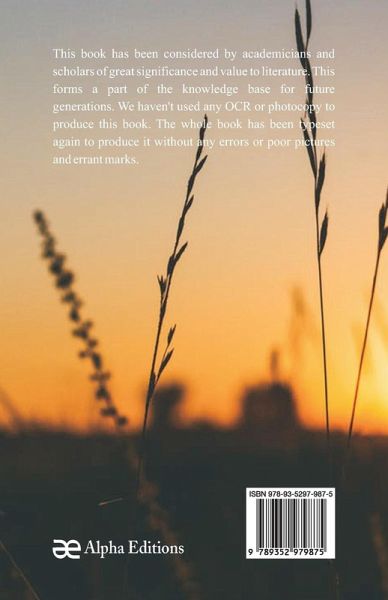This book has been considered by academicians and scholars of great significance and value to literature. This forms a part of the knowledge base for future generations. We havent used any OCR or photocopy to produce this book. The whole book has been typeset again to produce it without any errors or poor pictures and errant marks.