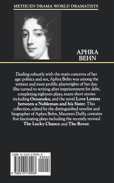 Aphra Behn was among the wittiest and most prolific playwrights of her day The Widow Ranter is a tragi-comedy, The False Count concerns the marriage of a young woman to a much older man whilst The Lucky Chance ran into instant criticism for immorality. The Rover is her most famous comedy and Abdelazar is her only tragedy. "Masterpieces are not single and solitary births; they are the outcome of many years of thinking in common...All women together ought to let flowers fall upon the tomb of Aphra Behn." (Virginia Woolf on Aphra Behn)