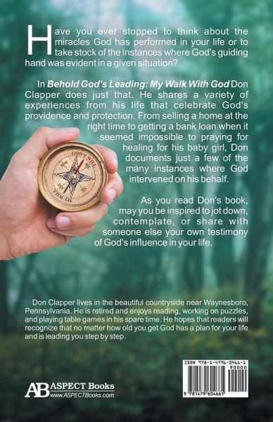 Have you ever stopped to think about the miracles God has performed in your life or to take stock of the instances where God's guiding hand was evident in a given situation? In "Behold God's Leading: My Walk With God" Don Clapper does just that. He shares a variety of experiences from his life that celebrate God's providence and protection. From selling a home at the right time to getting a bank loan when it seemed impossible to praying for healing for his baby girl, Don documents just a few of the many instances where God intervened on his behalf. As you read Don's book, may you be inspired to jot down, contemplate, or share with someone else your own testimony of God's influence in your life.