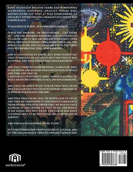 SOME FOURTEEN BILLION YEARS AGO SOMETHING WONDERFUL HAPPENED, EXACTLY WHERE WHO KNOWS?,SOME SAY THAT IT WAS EVERYWHERE AT ONCE,BUT NEVERTHELESS A MIRACULOUS EVENT WAS TAKING PLACE. IT WAS MINUTE IN SIZE, BUT IMMENSE IN ENERGY! IT WAS THE 'BIG BANG', OR 'AND GOD SAID',..."LET THERE BE"...AND THE UNIVERSE WAS BORN, AND IT CONTINUED TO GROW, AND IT HAS GROWN EXPIDENTIALLY EVER SINCE, AND NOW IT HAS BECOME A HOME FOR US, AND THE MIRIAD OF STARS, AND GALAXIES ARE BEING PREPARED EVEN AS I AM WRITING THIS,...FOR MANKIND ! AND IT CONTINUES TO GROW, BUT SOME PEOPLE SAY THAT IT WAS JUST AN ACCIDENT, BUT I SAY THAT IT WAS BY DESIGN, AND THAT DESIGN WAS FOR OUR BENEFIT. AND THAT THERE IS A SUPREME BEING, 'A CREATOR', WHO IS FAR ABOVE AND BEYOND OUR CONCEPTION OF SPACE AND TIME, AND THAT HE CARES ABOUT US WITHOUT LIMIT, SO MUCH SO THAT HE BUILT AN ENTIRE UNIVERSE TO ACCOMODATE MANKIND. AND THAT HE HAS A 'PLAN' FOR US THAT WILL BE SO SPECTACULAR THAT WE COULD'NT POSSIBLY IMAGINE OF IT EVEN IN OUR WILDEST DREAMS. AND EVEN THOUGH WE 'FELL' HE NEVER GAVE UP ON US, AND THAT HE CAME DOWN TO THE EARTH TO REDEEM US FROM SIN AND DEATH IN ORDER THAT WE WOULD ONCE AGAIN BE AT THE CENTRE OF THAT 'PLAN', THE WHICH IS ON GOING BUT NOT UNTIL THE EARTH HAS BEEN CLEANSED WILL IT BE INITIATED AND CONTINUED IN EARNEST. AND THIS BOOK DESCRIBES THOSE 'PLANS' . BUT THE CUNNING AND CRAFTY NATURE OF 'LUCIFER', AND OF THE 'FALLEN ANGELS' TRIES TO THWART THOSE PLANS.