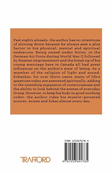 Over eighty, the author has no intentions of slowing down because he always sees a plus factor in his physical, mental and spiritual endeavors. Being raised under Hitler, in the German Air Force during World War II followed by Russian imprisonment and the break-up of his young marriage in Canada all had great influences on the author's state of being. As a member of the religion of light and sound, Eckankar, for over thirty years, many of life's questions today are answered spiritually, adding to the unending expansion of consciousness and the ability to look behind the scenes of everyday living. However, to keep his body in good working order, the author rides his muscle-powered scooter, swims and hikes almost every day. Other books by Arend Wieman: 2999 Adler Street 2999 Adler Street II The Dream Journal The Journals of Uncle Hugo Edgar, A Child's Best Friend Let There Be Love The Old Detective The Plumber Recognition and Love Tale of Truth The Wheel of God The Zodiac Voyage