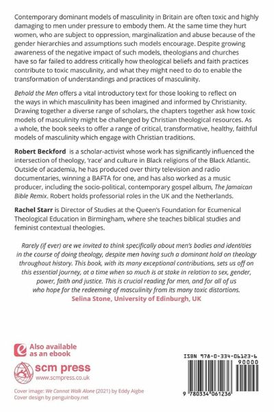 Contemporary dominant models of masculinity in Britain are often toxic, highly damaging to both men under pressure to embody them, and women who are subject to oppression, marginalization and abuse because of the gender hierarchies and assumptions such models encourage. Despite growing awareness of the negative impact of such models theologians and churches have so far failed to address critically how theological beliefs and faith practices contribute to toxic masculinity, and what they might need to do to enable the transformation of understandings and practices of masculinity. Behold the Men offers a vital introductory text for those looking to reflect on the ways in which masculinity has been imagined and informed by Christianity. Drawing together a diverse range of scholars, the chapters together ask how toxic models of masculinity might be challenged by Christian theological resources. As a whole the book seeks to offer a range of critical, transformative, healthy, faithful models of masculinity, which engage with Christian traditions. Rarely (if ever) are we invited to think specifically about men's bodies and identities in the course of doing theology, despite men having such a dominant hold on theology throughout history. This book, with its many exceptional contributions, sets us off on this essential journey, at a time when so much is at stake in relation to sex, gender, power, faith and justice. This is crucial reading for men, and for all of us who hope for the redeeming of masculinity from its many toxic distortions.Selina Stone, University of Edinburgh, UK Various voices suggest the role of men, and who they are, is in a state of chaotic flux. Behold the Men offers a refreshing theological reflection on the nature and human-ness of men. Using Christian themes such as 'Nakedness, Displaced Bodies (Mission), Broken Bodies (Resisting Sin), Bodies of Christ (both the Man Jesus and the Church) Resistant Bodies (Pastoral Care) and others, this publication, with questions for deeper reflection, will challenge clergy and layperson alike in furthering one's understanding of men from a perspective not often given much thought.Delroy Hall, minister, counsellor, coach and trainer This is a deeply challenging and provocative book. Pushing at the edges and beyond of what we think we know about what it is to be a man, and what the Christian faith and the person of Jesus might offer into the conversation. Not for the faint-hearted, this radically subversive and textured collaboration explores topics of gender, masculinity, race, power and marginalisation that are often left out of mainstream theological discourse. Diverse in its content, wide in its scope, this is an important and powerful book.Chine McDonald, Writer, broadcaster and author of God Is not a White Man: And Other Revelations,