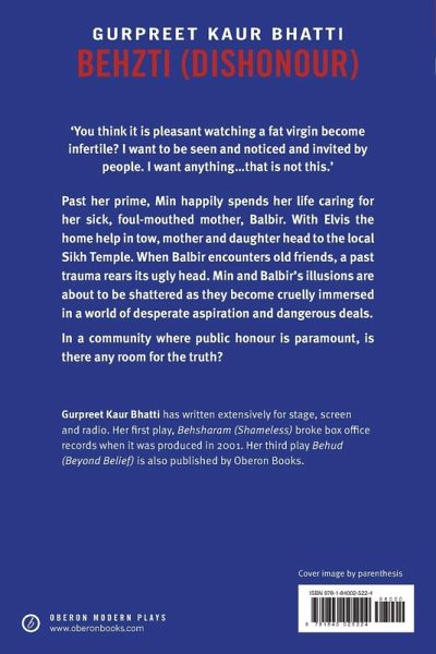"You think it is pleasant watching a fat virgin become infertile? I want to be seen and noticed and invited by people. I want anything... that is not this." Past her prime, Min joyfully spends her life caring for her sick, foul-mouthed mother, Balbir. Today, for the first time in years, they¿re off out. Mother and daughter head to the local Sikh Temple, but when Balbir encounters old friends, a past trauma rears its ugly head. Min and Balbir¿s illusions are about to be shattered as they become immersed in a world of desperate aspiration and dangerous deals. In a community where public honour is paramount, is there any room for the truth? Behzti was scheduled to open at The Door (Birmingham Rep) in December 2004 but was cancelled due to protests by some members of the local Sikh community.