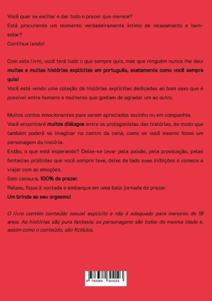 Você quer se excitar e dar todo o prazer que merece?Está procurando um momento verdadeiramente íntimo de relaxamento e bem-estar?Então continue lendo!Com este livro, você terá tudo o que sempre quis e que ninguém nunca lhe deu: muitas e muitas histórias explícitas em português, exatamente como você sempre quis!Você tem diante de si uma coleção de histórias explícitas dedicadas ao bom sexo que é possível entre homens e mulheres que gostam de agradar um ao outro. Muitos contos excitantes para experimentar sozinho ou acompanhado.Você encontrará muitos diálogos entre os protagonistas das histórias, de modo que também poderá se imaginar no centro da cena, como se você mesmo fosse um personagem da história.Então, o que está esperando? Deixe-se levar pela paixão, pela provocação, pelas fantasias proibidas que você sempre teve, deixe de lado suas inibições e comece a viajar com as emoções.Sem censura, 100% de prazer.Relaxe, fique à vontade e embarque em uma bela jornada de prazer.Um brinde ao seu orgasmo!