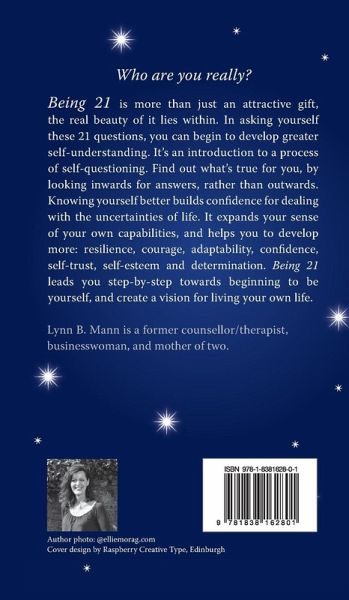 'Who am I really?' What 21year-old doesn't ask themself this question. Entering your twenties, turning 21, and the next few years, is an intense time in our lives. Supposedly it's when we become an adult. Where we begin to map out what our life might look like. When we're likely to have lots of big decisions to make around careers, studying, where we'll live, and in relationships. How are we meant to navigate all of this, if we don't really know who we are or what we want? Being 21 is a beautiful book on the outside and meaningful within. This original and attractive 21st Birthday gift introduces a process of self-questioning, which helps build confidence, and capability. It also supports mental and emotional wellbeing. Throughout the process, the reader is helped in developing more: confidence, self-esteem, resilience, courage, adaptability, self-trust, and determination. Come to know what's true for you as an individual, by looking inwards for answers, rather than outwards. Discovering how to: - turn self-consciousness into self-awareness - connect to your true self - grow your sense of your own capabilities - define what success in life means for you - let your hopes and dreams for the future shape how you live now - live more from your heart than your head - harness your creative energy, and direct it towards creating the life you want - separate your wants from your needs - create a vision for your life - align your actions to your vision In 21 carefully crafted, powerful, questions, former counsellor/therapist, Lynn B. Mann, has created a step-by-step guide towards the reader knowing more who they are, and what they want their life to be about.