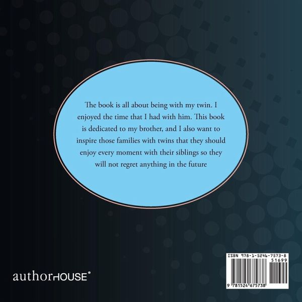 The book is all about being with my twin. I enjoyed the time that I had with him. This book is dedicated to my brother, and I also want to inspire those families with twins that they should enjoy every moment with their siblings so they will not regret anything in the future
