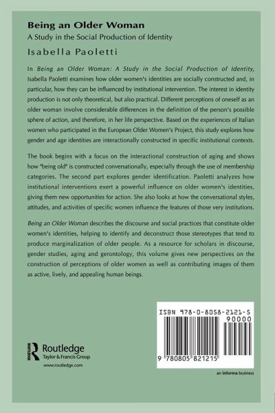 The study presented in this volume examines how older women's identities are socially constructed and, in particular, how they can be influenced by institutional intervention. The interest in identity production is not only theoretical, but also practical. Different perceptions of oneself as an older woman involve considerable differences in the definition of that person's possible sphere of action, and therefore, in her life perspectives. The data -- collected during a four-year project studying older women -- consist of video recordings of the committee meetings of the Older Women's Group of Perugia, Italy. Other video recordings of theater workshops and of the management committee meetings of the Senior Citizen Centers in Perugia are used as a source of comparison. Transcripts of the video material are analyzed through a detailed discourse analysis within an ethnomethodological framework. The data are used to explore how gender and age identities are interactionally constructed in specific institutional contexts. The first part of the book focuses on the interactional construction of aging. It shows how "being old" is constructed conversationally, in particular, through the use of membership categories. Distancing from the category "old" and denial of aging are frequently encountered conversational moves. However, the category is perceived as acceptable, even desired and invoked, when it becomes an institutionally relevant category, giving access to interesting activities or special benefits. The second part of the book explores gender identification. Conflict among different institutional subjects is shown to fade into gender conflict. The study analyzes how institutional interventions exert a powerful influence on older women's identities, giving them new opportunities for action. It also looks at how the conversational styles, attitudes, and activities of specific women influence the features of those very institutions. In short, this book describes the discourse and social practices that constitute older women's identities -- helping to identify and deconstruct stereotypes that tend to produce marginalization of older people. The book's existence is itself a contribution to the construction of older women as busy, lively, appealing human beings; it is the first research publication to emerge from The European Older Women's Project. Of interest to those in any discipline studying the topics of ethnomethodology, gender, aging, and identity.