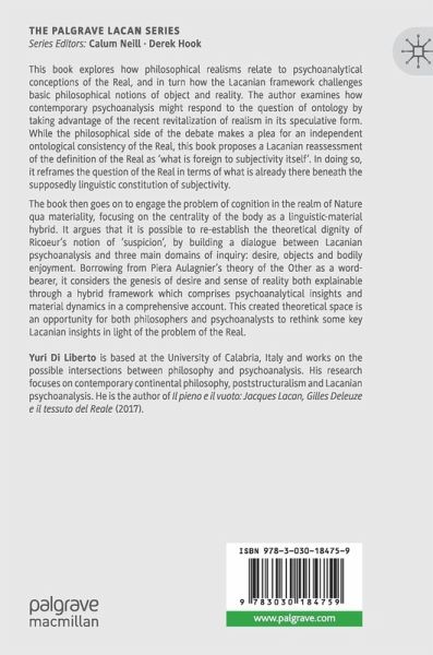 This book explores how philosophical realisms relate to psychoanalytical conceptions of the Real, and in turn how the Lacanian framework challenges basic philosophical notions of object and reality. The author examines how contemporary psychoanalysis might respond to the question of ontology by taking advantage of the recent revitalization of realism in its speculative form. While the philosophical side of the debate makes a plea for an independent ontological consistency of the Real, this book proposes a Lacanian reassessment of the definition of the Real as 'what is foreign to subjectivity itself'. In doing so, it reframes the question of the Real in terms of what is already there beneath the supposedly linguistic constitution of subjectivity.