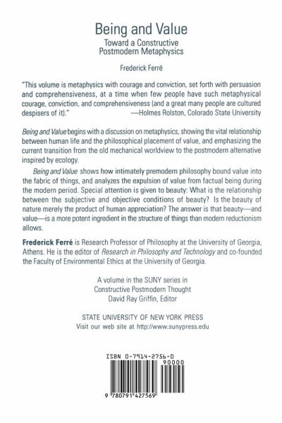 This book shows the vital relationship between human life and the philosophical placement of value, emphasizing the now-occurring transition from the old mechanical world view to the postmodern alternative inspired by ecology.