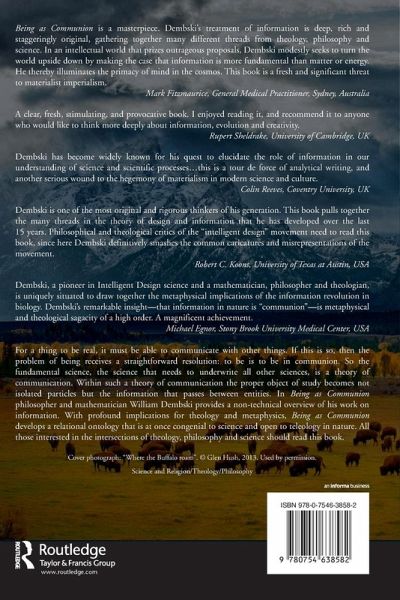 In Being as Communion philosopher and mathematician William Dembski provides a non-technical overview of his work on information. Dembski attempts to make good on the promise of John Wheeler, Paul Davies, and others that information is poised to replace matter as the primary stuff of reality.