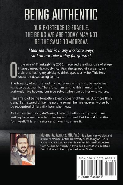 Our existence is fragile. I learned that in many intricate ways, so I do not take today for granted. I do not know what tomorrow will bring. I do not even know if tomorrow will come. On the eve of Thanksgiving 2016, I received the diagnosis of stage 4 lung cancer. Next to dying, I fear the spread of cancer to my brain and losing my ability to think, speak, or write. This loss would be devastating to me. The fragility of our life made me want to be authentic. Therefore, I am writing this memoir to be authentic-we become our true selves when we author who we are. I am afraid of being forgotten. Death does frighten me. But more than dying, I am scared of having no one remember me or, even worse, of being recognized differently from who I was. At the same time, I have never thought that I was entitled to ask others not to forget me. But, not to be forgotten is precisely what I yearn for. While I am writing for the other, I am simultaneously writing for myself. I am one of the readers and will test the subject as it gets written. My criteria are stricter. I want to say, "This is my narrative."