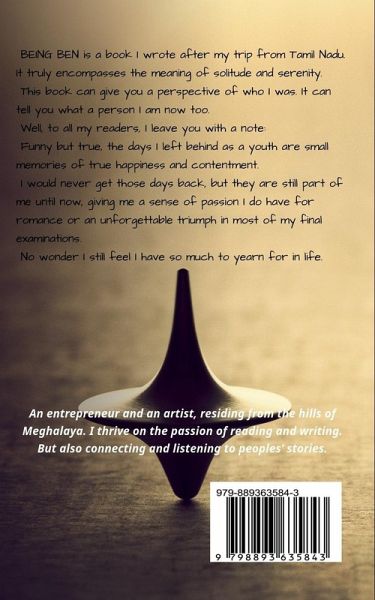 Being Ben is a book that encompasses the meaning of solitude and serenity. A book that gives the readers a reason to connect with their childhood and youthful past. The book can give a perspective of the author's connection with his past. His childhood endevours and struggles. Youthful beginnings. The author speaks about the emotions while reading books and how he found solitude while connecting with them. The book shares the passion the author has in connecting with different people, knowing their culture and learning a different language.
