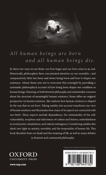 All human beings are born and all human beings die. In these two ways we are finite: our lives begin and our lives come to an end. Historically philosophers have concentrated attention on our mortality--and comparatively little has been said about being born and how it shapes our existence. Alison Stone sets out to overcome this oversight by providing a systematic philosophical account of how being born shapes our condition as human beings. Drawing on both feminist philosophy and existentialist concerns about the structure of meaningful human existence, Stone offers an original perspective on human existence. She explores how human existence is shaped by the way that we are born. Taking natality into account transforms our view of human existence and illuminates how many of its aspects are connected with our birth. These aspects include dependency, the relationality of the self, vulnerability, reception and inheritance of culture and history, embeddedness in social power, situatedness, and radical contingency. Considering natality also sheds new light on anxiety, mortality, and the temporality of human life. This book therefore bears on death and the meaning of life, as well as many debates in feminist and continental philosophy.