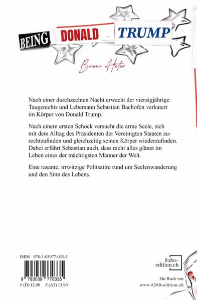 1 WEF? WTF!Autsch. Scheiße, wo bin ich? Hotel? Ich sollte nichtmehr so viel trinken!"Sebastian Bachofen, du bist ein vierzigjähriger Idiot du bist nun mal nicht mehr zwanzig!"Aber heute Morgen fühlt es sich echt an wie siebzig.Schwarze Bettwäsche? Ist das Seide? In welchem Hotelbin ich denn mein Kopf ist schwer. Meine Beine sindschwer. Mein Körper ist unglaublich schwer.Aber die Kleine gestern wie hieß sie nochmal? diehatte Klasse. Dass ich mich nicht mehr an ihren Namenerinnern kann, ist ungewöhnlich. Aber ihre Beine, ihrHintern, ihre wunderbaren B ... "Börk" Augen daranerinnere ich mich. Sie hat mich so angesehen. MeineAugen sind schwer alles noch verschwommen.Ich erhebe mich schwerfällig und suche meine Pantoffeln.Komisch, an das Bild kann ich mich nicht erinnern.USFlagge im Hotelzimmer? Scheiß WEF die würdenbesser die Davoser Alpen abbilden, dann wüssten dieIdioten von Wirtschaftsbossen immerhin, in welchemLand sie sind, so mit Schnee anstatt mit Sand.Jetzt erinnere ich mich: Sandee das war die Kleine Amerikanerin. Sicherheitsbeamte für irgend so einen reichenArsch. Hehe, ich erinnere mich auch, dass siemeinen Namen nicht hat aussprechen können.Sagte immer 'Beethoven' als ob ich komponierenkönnte. Nun, englisch ausgesprochen klingt Bachofenauch ähnlich, zugegeben. Aber dann könnte man auch'dumb' sagen anstatt von Trump würde eh keinermerken. Shit, ich muss pissen."Komm schon, Körper du stellst dich doch sonstnicht so dämlich an."Mit meinen Augen stimmt aber echt was nicht wo zumTeufel ist mein Schwanz?Langsam torkle ich ohne Pantoffeln ins Badezimmer.Es scheint mir weiter zu sein als noch gestern. Als obmein Hotelzimmer in der Nacht gewachsen wäre. Undnicht nur das ich habe das Gefühl, eine gewaltigeTrommel vor mir zu tragen. Mein Bauch scheint auchgewachsen zu sein.Erinnert mich irgendwie an diesen dämlichen Weihnachtsfilmmit Tim Allen. Pissen geht zum Glück auchblind einfach fühlen. Was denn echt jetzt? Hierstimmt was nicht! Wie soll ich mit dem Streichholzanständig pissen? Wo ist mein ... Ich sollte nicht mehr soviel saufen.Nach der Wohltat untenrum schnell etwas Wasser insGesicht."What the fuck ...?"Ein markerschütternder Schrei durchdringt sämtlicheSicherheitstüren des Davoser Nobelhotels. Die SecurityBeauftragten kommen angerannt.Bevor sie die Tür öffnen, klopft der Sicherheitschefdezent an."Mister President? Alles in Ordnung bei Ihnen? ...Mister President?"Ich renne aus dem Badezimmer. Im Spiegel hat michsoeben Donald Trump angesehen und er sah nicht auswie siebzig eher wie neunzig. Jemand klopft an meineTür. Ein Mann spricht Englisch.Was ist hier los zum Teufel nochmal? Ich halluziniere!Der Mann klopft erneut und ruft wieder nach seinemPräsidenten.Der meint mich!"Ja, alles gut! Ich habe mir den Fuß gestoßen gehtschon!", rufe ich doch es klingt nicht nach mir.Akzentfreies Ami heisere MickyMausStimme. Dasbin nicht ich. Ich habe einen warmen Bass, der dieHerzen der Frauen zum Schmelzen bringt."Brauchen Sie einen Arzt?" Der Typ lässt nicht locker.Eher einen Psychiater oder einen Entgifter einenExorzisten, vielleicht?"Nein, wirklich alles gut. Ich geh dann wieder schlafen. Haben Sie vielen Dank."Wer immer Sie auch sind. Ich gehe nicht mehr schlafen auf keinen Fall.Nur zögerlich wanke ich zum großen Spiegel imWohnzimmer der unbekannten Suite.Das muss ein Traum sein.Allerdings ein ziemlich gut gemachter KITraum in4K. Das sieht alles verdammt echt aus. Diese Bildqualität,diese Grafik das hat ein Vermögen gekostet!Im Spiegel steht Donald Trump da besteht kein Zweifel.In meinem Kopf aber fühlt es sich noch an wie dieverkaterte Version von Sebastian Bachofen.Licht. Ich ziehe die schweren Vorhänge zur Seite. DieSonne strahlt vom wolkenlosen, kitschig blauen Himmelüber Davos in mein Gesicht. Licht schmerzt noch.Kaffee! Ich brauche Kaffee.Noch immer ohne Pantoffeln schlurfe ich über denflauschig dicken Teppich zur Tür und lausche zuerst, obda noch jemand ist. "Hallo? Sind Sie noch da?", rufe ichdurch die geschlossene Tür ich höre mich wie ein Idiotan."Mr. President? Ich höre Sie.""Könnte ich vielleicht etwas Kaffee kriegen? Wenn esgeht?""Aber sicher, kommt sofort. Dauert eine Sekunde."Ich höre, wie der Mann Befehle erteilt, selbst jedochoffenbar vor meiner Tür stehenbleibt. Scheint zu klappen.Tatsächlich klopft jemand kurz danach an. Ich öffneund sehe einen bulligen Mann könnte Jake Blues sein,seinem schwarzen Anzug und der Sonnenbrille nach zuurteilen. Eine attraktive Serviceangestellte tritt ein, machteinen Knicks und schwebt wortlos zum runden Tisch imWohnzimmer. Dort stellt sie die Kanne und die Tassehin, zusammen mit einem kleinen Korb herrlich duftenderBackwaren. Sie verschwindet ebenso wortloswieder."Danke!", rufe ich ihr nach, doch der Blues Brother ander Tür schliesst ebendiese bereits wieder.In welche Scheiße bin ich hier geraten? Das gibt's dochgar nicht!Ich gieße Kaffee ein, trete ans Fenster und kauegenüsslich ein Hörnchen. Vor dem Hotel steht eineGruppe Menschen mit Fotoapparaten. Sie sehen nichtnach Touristen aus. Als ich das Fenster öffne, beginnensie zu mir hochzuschreien und Fotos zu machen. SecurityMänner treiben sie weg. Ich hebe die Hand zumGruß und lächle."Mr. President. Sie sollten nicht so nah ans Fenstertreten." Der Blues Brother steht plötzlich neben mir. Ichbeschließe, ihn Jake zu nennen."Entschuldigen Sie. Ich wollte etwas frische Luft. Darfich auf den Balkon treten?""Bitte warten Sie, bis wir das Okay dazu haben." Jakeplappert wieder in seinen Ohrstöpsel. Er lauscht, nickt,lauscht. Dann öffnet er die Balkontür."Bitte, es ist sicher. Sie können draußen sitzen. Ichbringe Ihnen noch Ihren Morgenmantel.""Danke."Ich setze mich in die Morgensonne und genieße denKaffee. Dabei befinde ich mich wie in Trance.Langsam kommen die Erinnerungen wieder.Ich bin in Davos. Während des WEF ist das eigentlichdoof, doch ich hatte das Zimmer schon gebucht. Dieinternationalen Partys sollen umwerfend sein, hat man
