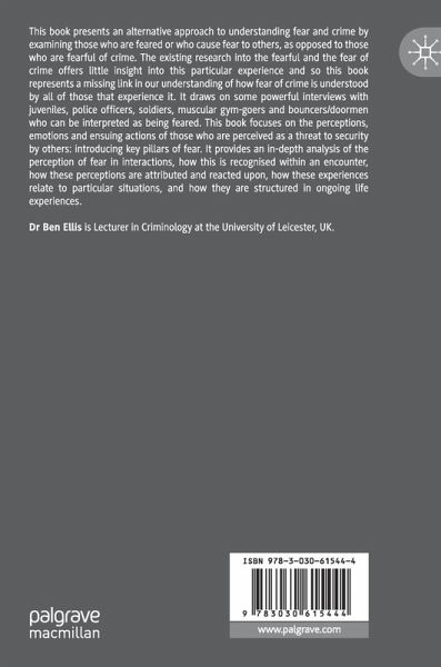 This book presents an alternative approach to understanding fear and crime by examining those who are feared or who cause fear to others, as opposed to those who are fearful of crime. The existing research into the fearful and the fear of crime offers little insight into this particular experience and so this book represents a missing link in our understanding of how fear of crime is understood by all of those that experience it. It draws on some powerful interviews with juveniles, police officers, soldiers, muscular gym-goers and bouncers/doormen who can be interpreted as being feared. This book focuses on the perceptions, emotions and ensuing actions of those who are perceived as a threat to security by others. It provides an in-depth analysis of the perception of fear in interactions, how this is recognised within an encounter, how these perceptions are attributed and reacted upon, how these experiences relate to particular situations, and how they arestructured in ongoing life experiences. It suggests 'pillars' of fear.