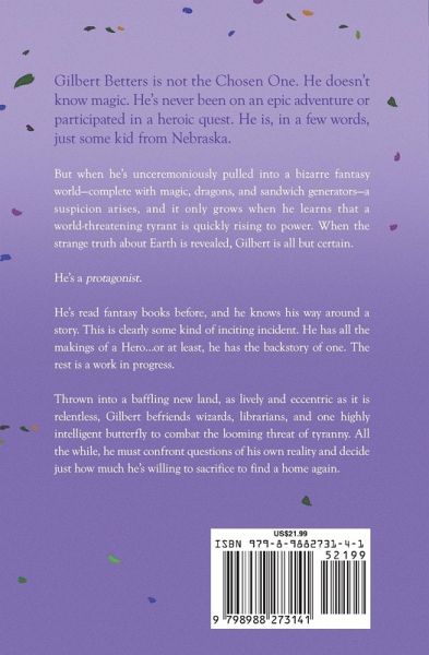 "Pulls off the difficult trick of simultaneously parodying, celebrating, and exemplifying its genre." -Booklife Gilbert Betters is not the Chosen One. But that won't stop him from trying out the part. Thrown into a baffling land, Gilbert befriends wizards, librarians, and an enthusiastic butterfly to combat the rise of tyranny. Along the way, he must confront the truth of his own reality and decide just how much he's willing to sacrifice to find a home again. A heartfelt and fantastical adventure filled with whimsy, charm, and unforgettable characters.