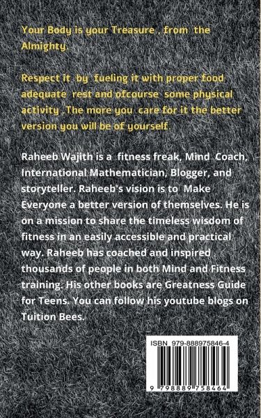 Your body is your treasure, the perfect body adds years to life and life to years. To enjoy all the earthly pleasures it is mandatory for us to have a healthy body. If you have a healthy body you can achieve anything in this world, Nothing is impossible and you can live a life you are proud of. The way to go is to achieve something great and that is not the end but to enjoy the privileges which come along with the greatness for that a healthy body is the requirement. A strong and healthy body gives you a perfect feeling,a strong intuition you can achieve anything in this world. At the same time if Health is lost All Is Lost we realize this truth only when we are sick. "A strong mind in a strong body" Everyone deserves to be fit and strong no matter the age, Just think how much we suffer when we get cold. It's very irritating isn't it, But usually the cold disappears within a week but if some serious disease affects us like diabetes, cancer, heart attack, and stroke, etc.., you are almost done that is why our forefathers rightly said Health is Wealth. Any book read and not put into action is almost equal to the book not read so I would advise you to get into action whatever you learn from this book, without doing a physical workout, and only reading this book will take you nowhere, There are two primary conditions for you to keep your body healthy and strong, the first is to aspire for a healthy body the second is the action ie. physical workouts