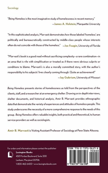 Being Homeless presents the stories of homelessness as told from the perspectives of the clients, the staff, and a researcher at an emergency shelter. Drawing on in-depth interviews, shelter documents, and historical analysis, the author underscores the necessity for a more comprehensive response to the needs of homeless people.