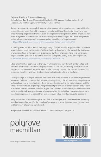 'Prisons are meant to accomplish a remarkable amount from punishment to rehabilitation to resettlement even. Yet, oddly, we rarely seek to test these theories by listening to the understandings of prisoners themselves on the imprisonment experience. In this important new work, Marguerite Schinkel allows us an almost unprecedented insight into these perspectives and develops a new approach to understanding the effects of imprisonment.' - Shadd Maruna, Dean, School of Criminal Justice, Rutgers University, USA