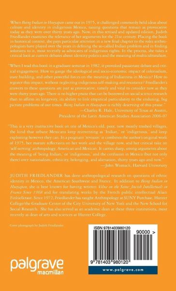 'When I read this book in a graduate seminar in 1982, it provoked passionate debate and critical engagement. How to gauge the cumulative ideological influence of colonialism, state building, and other powerful forces on the meaning of Indianness, and the socio-economic place of indigenous peoples, in Mexico? How to fully register this influence, without neglecting the generative processes of indigenous self-making and resistance? Especially with the new final chapter on neoliberal multiculturalism, Friedlander's answers to these questions are just as provocative, timely and vital to consider now as they were 25 years ago. There is no higher praise that can be bestowed on social science research than to affirm its longevity, its ability to link empirical particularity to the enduring, big picture problems of our times. Being Indian in Hueyapan is richly deserving of this praise.' - Charles R. Hale, University of Texas at Austin; President of the Latin American Studies Association 2006-07