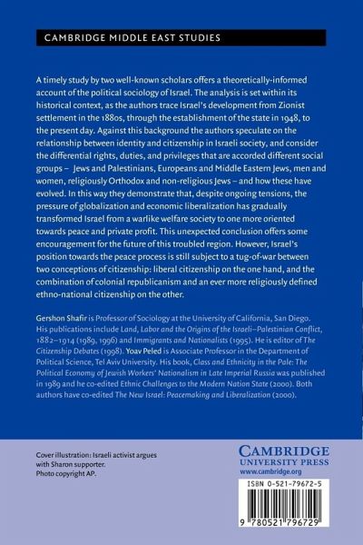 Gershon Shafir is Professor of Sociology at the University of California, San Diego. His publications include Land, Labor, and the Origins of the Israeli-Palestinian Conflict, 1882-1914 (1989, 1996) and Immigrants and Nationalists (1995). He is the editor of The Citizenship Debates (1998). Yoav Peled is lecturer in the Department of Political Science, Tel Aviv University. His book, Class and Ethnicity in the Pale: The Political Economy of Jewish Workers' Nationalism in Late Imperial Russia, was published in 1989 and he edited Ethnic Challenges to the Modern Nation-State (2000). Both authors have co-edited The New Israel: Peacemaking and Liberalization (2000).