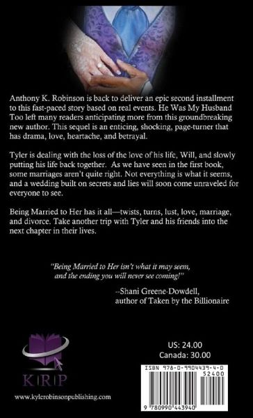 Anthony K. Robinson is back to deliver an epic second installment to this fast-paced story based on real events. He Was My Husband Too left many readers anticipating more from this groundbreaking new author. This sequel is an enticing, shocking, page-turner that has drama, love, heartache, and betrayal. Tyler is dealing with the loss of the love of his life, Will, and slowly putting his life back together. As we have seen in the first book, some marriages aren’t quite right. Not everything is what it seems, and a wedding built on secrets and lies will soon come unraveled for everyone to see. Being Married to Her has it all—twists, turns, lust, love, marriage, and divorce. Take another trip with Tyler and his friends into the next chapter in their lives.