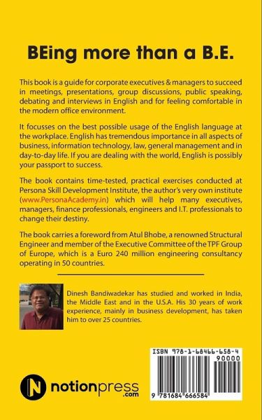 This book is a guide for corporate executives & managers to succeed in meetings, presentations, group discussions, public speaking, debating and interviews in English and for feeling comfortable in the modern office environment. It focusses on the best possible usage of the English language at the workplace. English has tremendous importance in all aspects of business, information technology, law, general management and in day-to-day life. If you are dealing with the world, English is possibly your passport to success. The book contains time-tested, practical exercises conducted at Persona Skill Development Institute, the author's very own institute ( www.PersonaAcademy.in ) which will help many executives, managers, finance professionals, engineers and I.T. professionals to change their destiny.