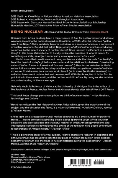 The hidden history of African uranium and what it means—for a state, an object, an industry, a workplace—to be "nuclear.” Uranium from Africa has long been a major source of fuel for nuclear power and atomic weapons, including the bomb dropped on Hiroshima. In 2003, after the infamous "yellow cake from Niger,” Africa suddenly became notorious as a source of uranium, a component of nuclear weapons. But did that admit Niger, or any of Africa's other uranium-producing countries, to the select society of nuclear states? Does uranium itself count as a nuclear thing? In this book, Gabrielle Hecht lucidly probes the question of what it means for something—a state, an object, an industry, a workplace—to be "nuclear.” Hecht shows that questions about being nuclear—a state that she calls "nuclearity”—lie at the heart of today's global nuclear order and the relationships between "developing nations” (often former colonies) and "nuclear powers” (often former colonizers). Hecht enters African nuclear worlds, focusing on miners and the occupational hazard of radiation exposure. Could a mine be a nuclear workplace if (as in some South African mines) its radiation levels went undetected and unmeasured? With this book, Hecht is the first to put Africa in the nuclear world, and the nuclear world in Africa. By doing so, she remakes our understanding of the nuclear age.
