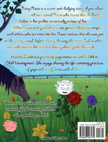 In this sweet, anti-bullying story-rhyme, a red rose named Rosie learns that the hurtful flowers in the Garden who make fun of her are actually just jealous of her. When Rosie is re-planted in a Rose Garden, she finds great relief and comfort with others who are more like her. Rosie understands that she was just in the "wrong crowd" before. Along the way she meets Bud, a white rose who teaches her that true beauty shines from the inside.