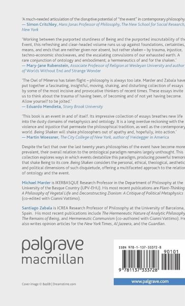 "The Owl of Minerva has taken flight - philosophy is always too late. Yet, we are always confronted by the shock of the novelty of world. We are always coming to the world. Every birth is a coming to theworld, anew. The world is always being made new. Being is the novum. Between this always already and this not yet, we stand 'shaken' we are this shakenness, this standing out on the edge of the having been and the not yet become. Every birth is traumatic, but so is enduring existence. Philosophy, thus, has not yet arrived. Philosophy is always arriving. Philosophy is by definition nonsynchronous to the extent that it is also atopos. For this reason, philosophy is the remembrance of the way we are always suffering from the drama of becoming through having been. There is always the philosophy of those who will come after us. Marder and Zabala have put together a fascinating, insightful, moving, shaking and disturbing collection of essays by some of the most incisive and provocative thinkers of our recent times, which are perishing from a lack of urgency. These essays invite us to think about this trauma of having been, of becoming, of not yet become. Allow yourself to be jolted." - Eduardo Mendieta, Stony Brook University