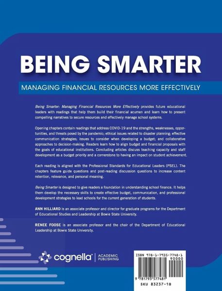 Being Smarter: Managing Financial Resources More Effectively provides future educational leaders with readings that help them build their financial acumen and learn how to present compelling narratives to secure resources and effectively manage school systems. Opening chapters contain readings that address COVID-19 and the strengths, weaknesses, opportunities, and threats posed by the pandemic; ethical issues related to disaster planning; effective communication strategies; issues to consider when developing a budget; and collaborative approaches to decision-making. Readers learn how to align budget and financial proposals with the goals of educational institutions. Concluding articles discuss teaching capacity and staff development as a budget priority and a cornerstone to having an impact on student achievement. Each reading is aligned with the Professional Standards for Educational Leaders (PSEL). The chapters feature guide questions and post-reading discussion questions to increase content retention, relevance, and personal meaning. Being Smarter is designed to give readers a foundation in understanding school finance. It helps them develop the necessary skills to create effective budget, communication, and professional development strategies to lead schools for the current generation of students.