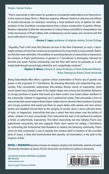 Being Subordinate Men offers a gender critical examination of Paul’s use of gender and power in the argument of 1 Corinthians, showing that the apostle consistently undermines first-century Roman norms of masculinity.