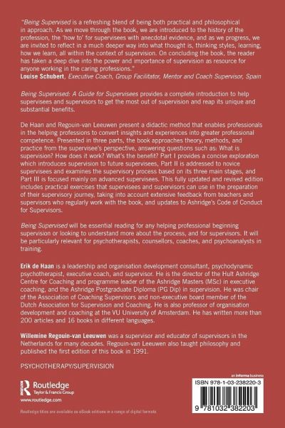 De Haan and Regouin-van Leeuwen present a didactic method that enables professionals in the helping professions to convert insights and experiences into greater professional competence. Presented in three parts, the book approaches theory, methods, and practice from the supervisee's perspective, answering questions such as: What is supervision? How does it work? What's the benefit? Part I provides a concise exploration which introduces supervision to future supervisees, Part II is addressed to novice supervisees and examines the supervisory process based on its three main stages, and Part III is focused mainly on advanced supervisees. This fully updated and revised edition includes practical exercises that supervisees and supervisors can use in the preparation of their supervisory journey, taking into account extensive feedback from teachers and supervisors who regularly work with the book, and updates to Ashridge's Code of Conduct for Supervisors.