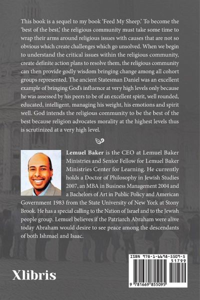 This book is a sequel to my book 'Feed My Sheep.' To become the 'best of the best,' the religious community must take some time to wrap their arms around religious issues with causes that are not so obvious which create challenges which go unsolved. When we begin to understand the critical issues within the religious community, create definite action plans to resolve them, the religious community can then provide godly wisdom bringing change among all cohort groups represented. The ancient Statesman Daniel was an excellent example of bringing God's influence at very high levels only because he was assessed by his peers to be of an excellent spirit, well rounded, educated, intelligent, managing his weight, his emotions and spirit well. God intends the religious community to be the best of the best because religion advocates morality at the highest levels thus is scrutinized at a very high level.